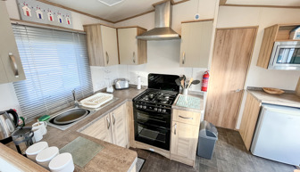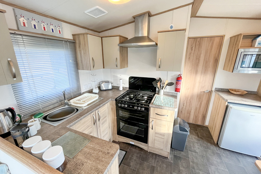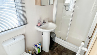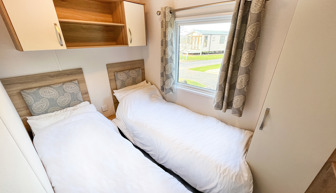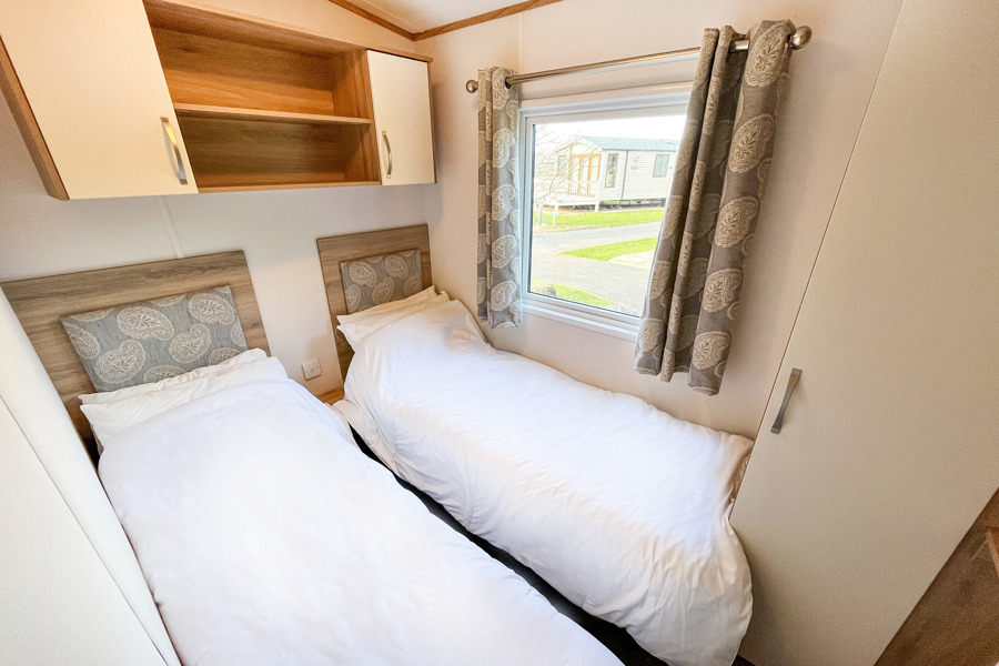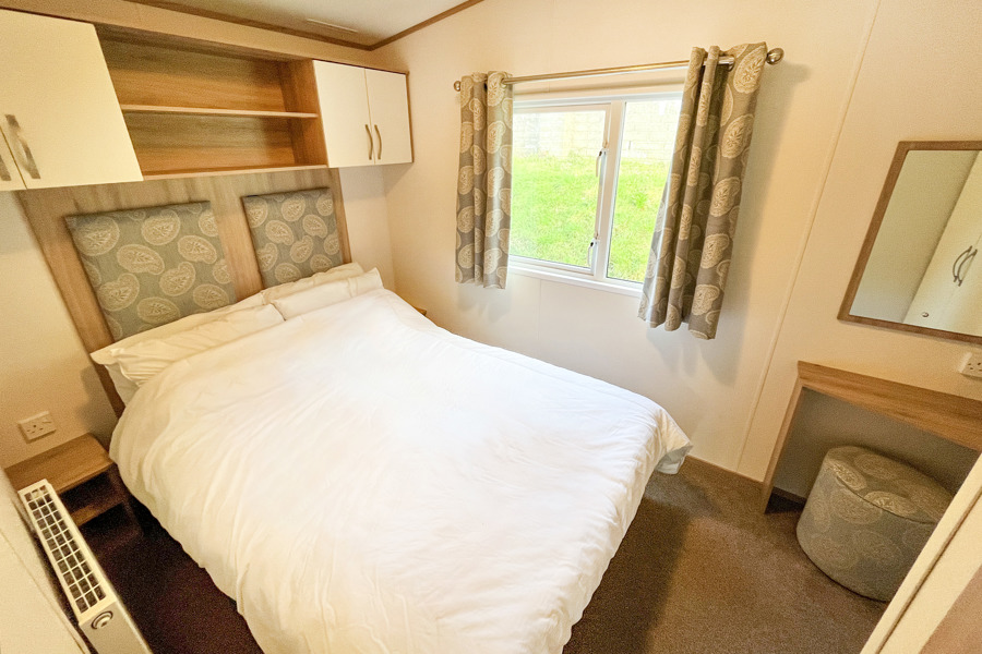 BEDROOMS: This holiday home has two bedrooms, one double with fitted wardrobe and over bed storage and an en-suite toilet and wash basin. One twin room with two single beds with fitted small wardrobes and radiators.BB368 can cater 6 guests. There is an occasional pull-out bed located in the lounge for those extra guests.