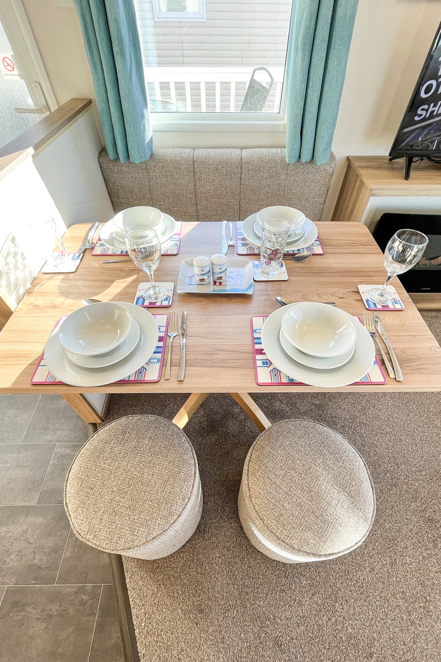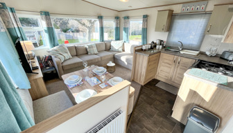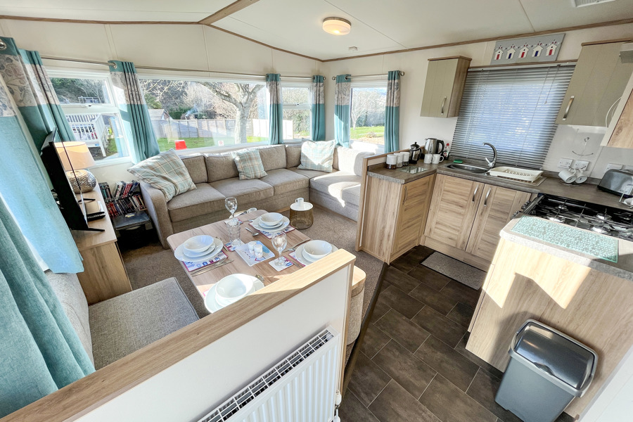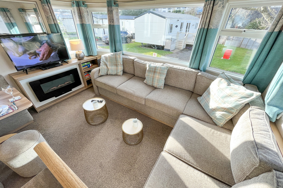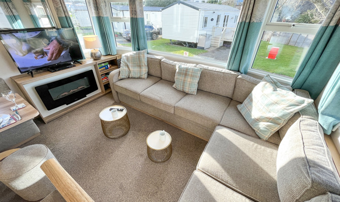 LOUNGE: The open plan lounge incorporates fixed seating and comes complete with TV, free view and DVD player. Please be advised that there is an occasional pull-out bed in the lounge for those additional guests.