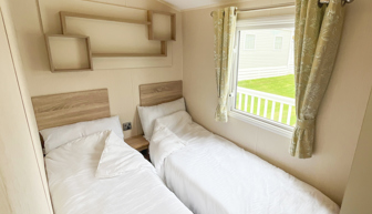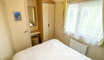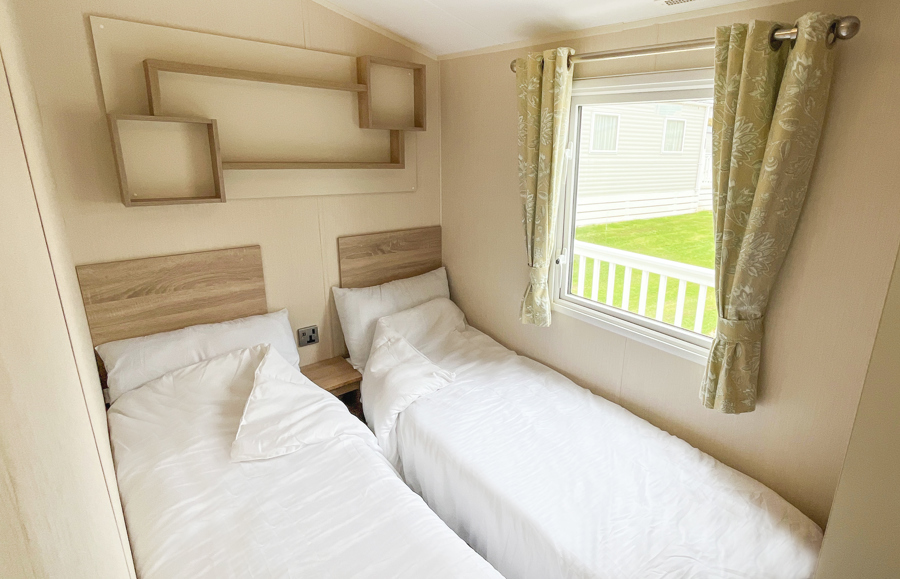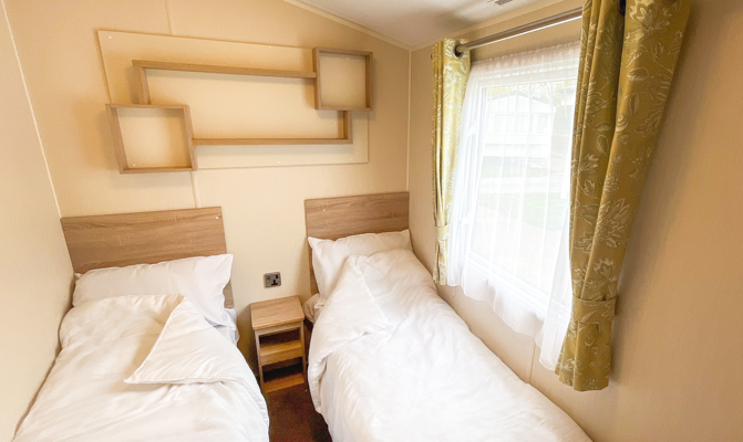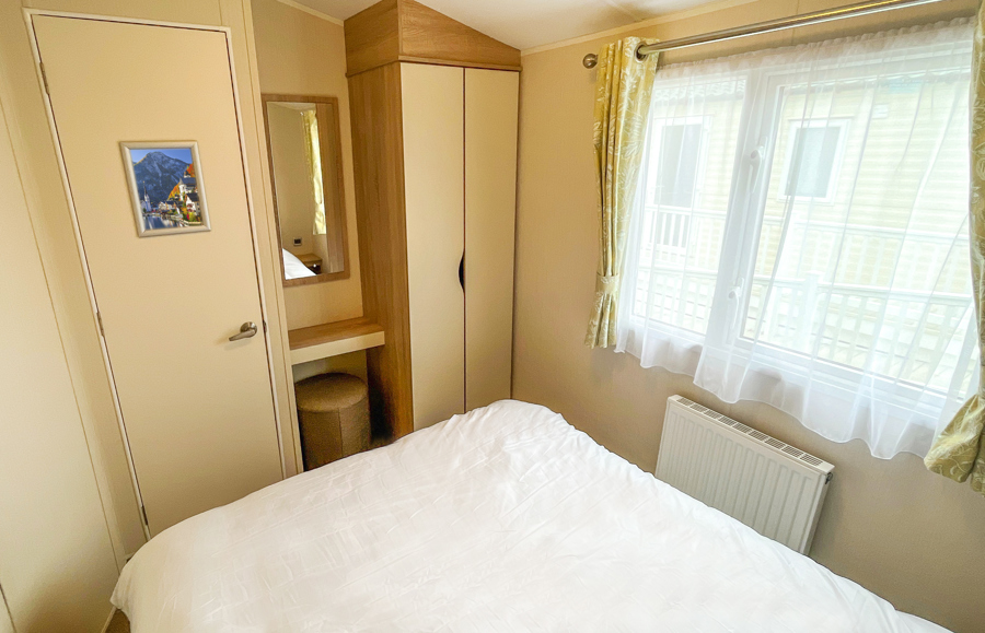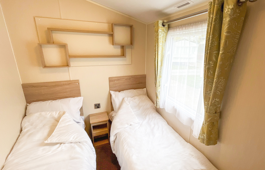 BEDROOMS: This holiday home has two bedrooms, one double with fitted wardrobe and vanity area. The twin rooms have two single beds, fitted small wardrobes and radiator. 70 can comfortably cater for 8 guests as there is an occasional pull out bed located in the lounge.