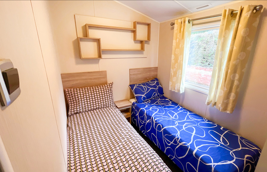 BEDROOMS: This holiday home has two bedrooms, one double bedroom with en-suite wc, wardrobe and vanity area. Twin bedroom and small wardrobe, linen can be supplied at an additional cost.