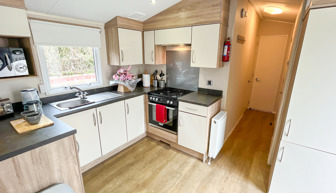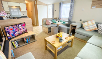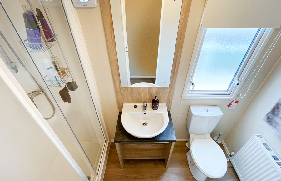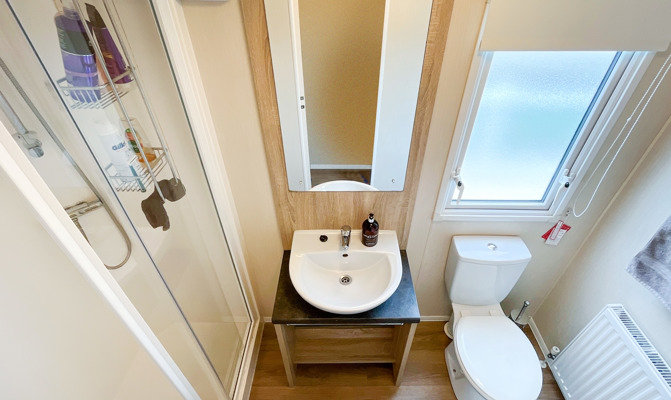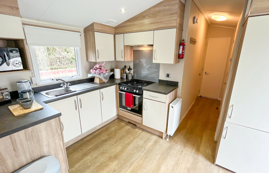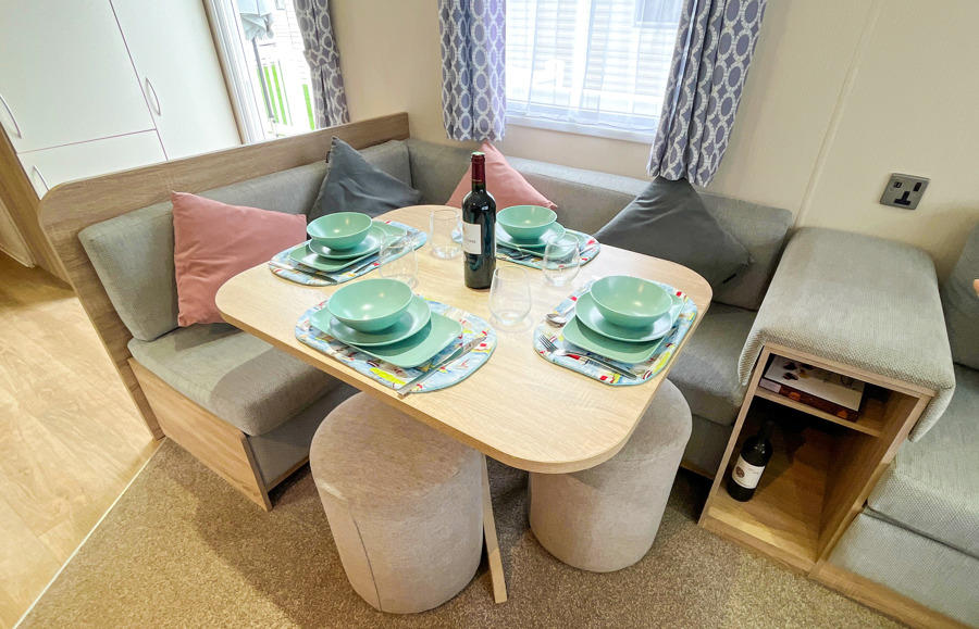 Key features: central heating, Wi-Fi-access, double glazing, fridge freezer, main bedroom with en-suite toilet, fixed seating with 2 stools and free-standing table, family shower room and allocated parking and veranda.