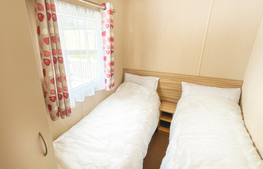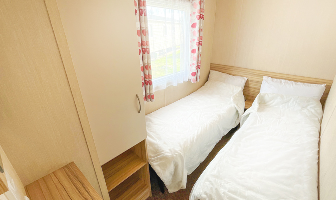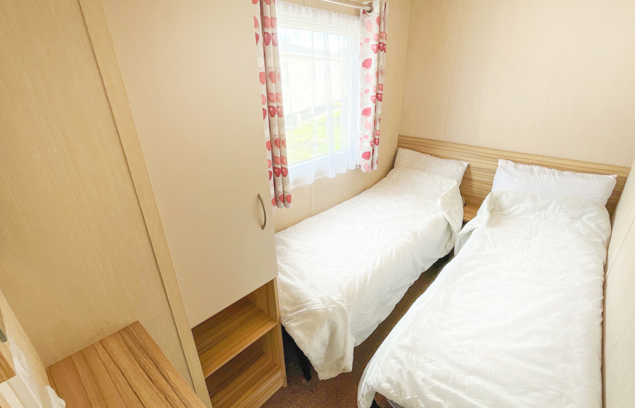Two twin rooms with 2 single beds and single fitted wardrobe.