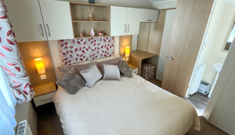 BEDROOMS: Double bedroom with double bed, over bed storage, fitted wardrobes and small vanity area. The master bedroom also includes an en-suite toilet and wash basin.