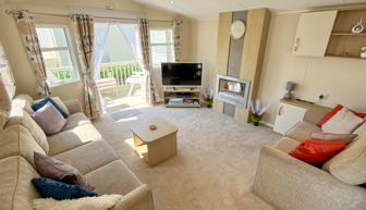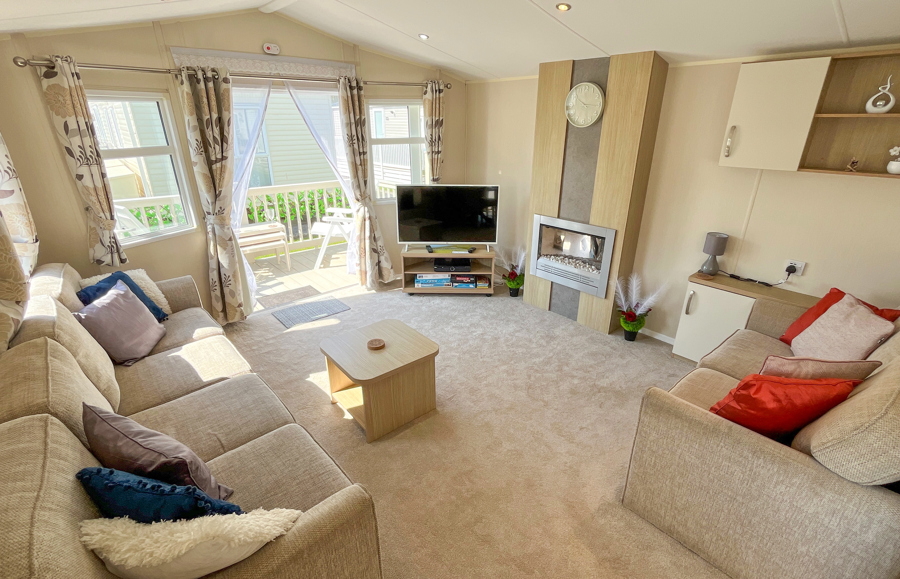 LOUNGE Open plan with fixed seating, TV with Freeview and fireplace. An occasional sofa bed is available for extra Guests. D3 can sleep a maximum of 6 guests.
