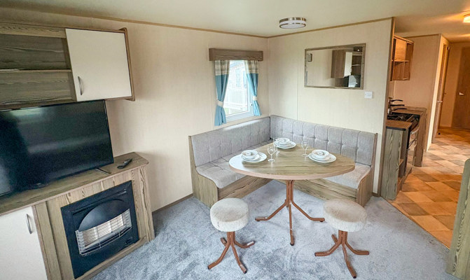 LOUNGE: This holiday home benefits from an open plan lounge with generous seating. Prepare to sit back and relax as the lounge is complete with flat screen TV & free view. There is an occasional pull out bed availble - EL28 can accommodate 8 guests.
