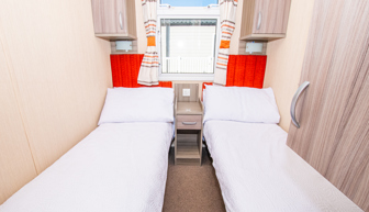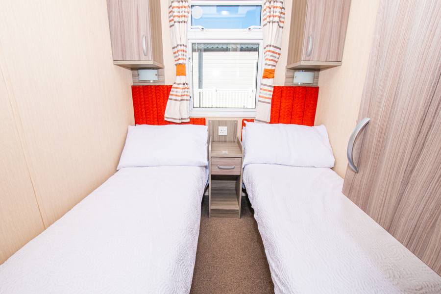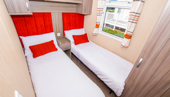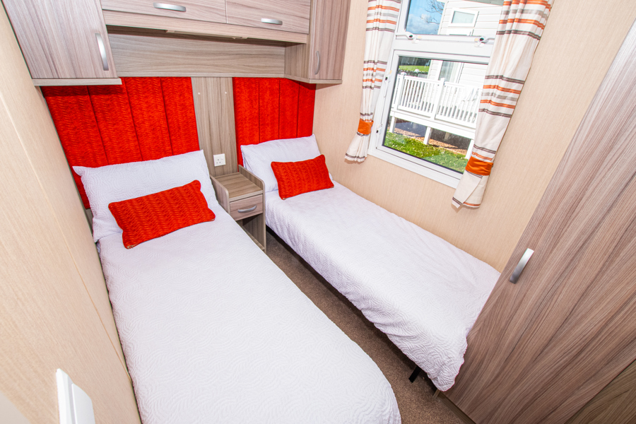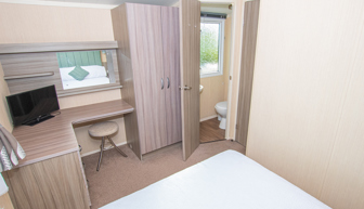 BEDROOMS: The master bedroom includes a double bed with overhead storage; TV, complete with a vanity area, fitted wardrobe and en-suite toilet, with hand basin. Two twin rooms, they both have small wardrobes and over bed cabinets.