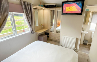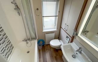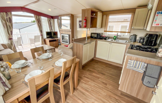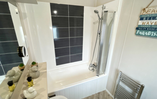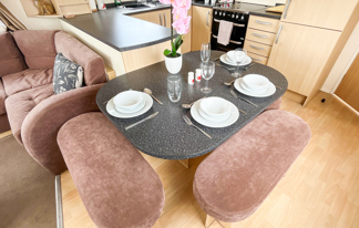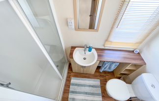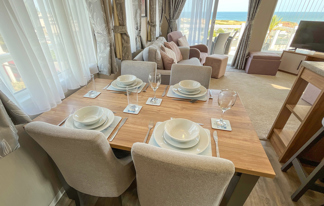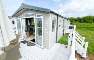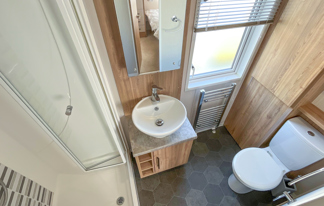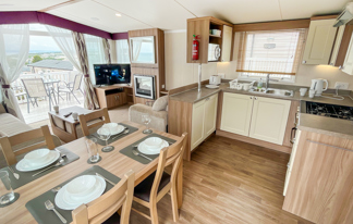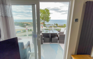 This lovely property boasts sea views, wifi-access and patio doors leading to a front veranda. It features a well-equipped kitchen, central heating, wifi-access, and two toilets for added convenience.