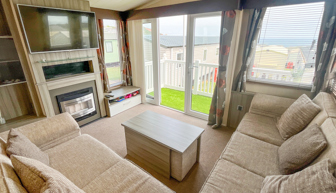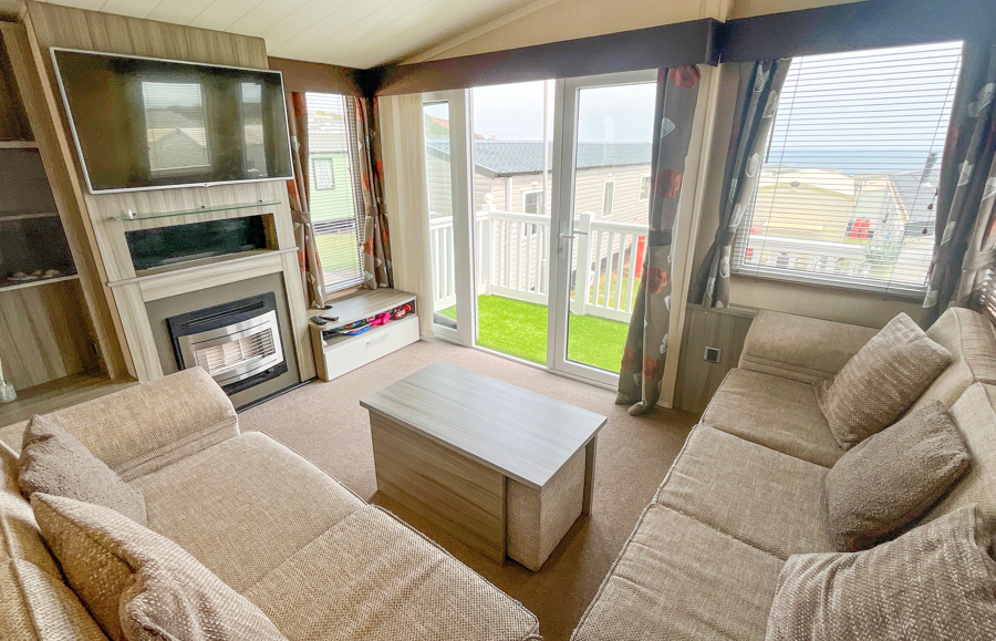 LOUNGE: Center lounge with fixed corner sofa, gas fire, flat screen TV and coffee table. Occasional pull-out bed to accommodate those extra guests. KP119 can accommodate a maximum of 8 guests.