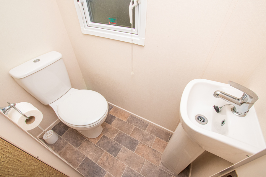 SHOWER ROOM: The Shower Room has a shower cubicle, wash basin, toilet and towel rail.