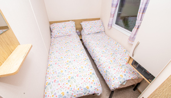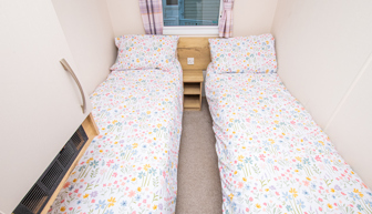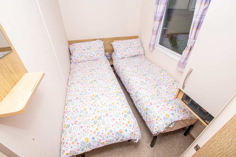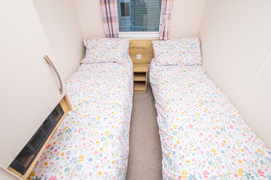 BEDROOMS: The Master includes a double bed with fitted wardrobe. The twin rooms have 2 x single beds and a small fitted wardrobe. The bedrooms are fitted with fan heaters.