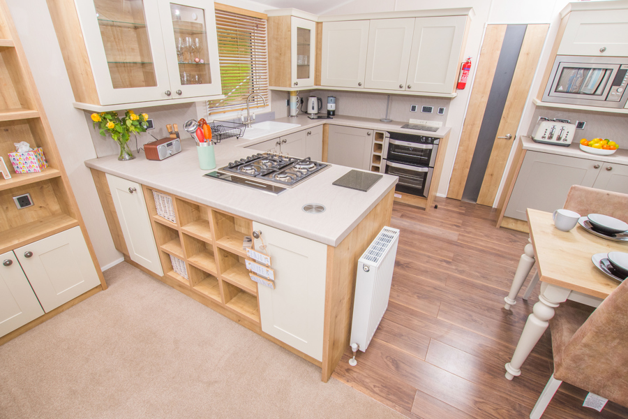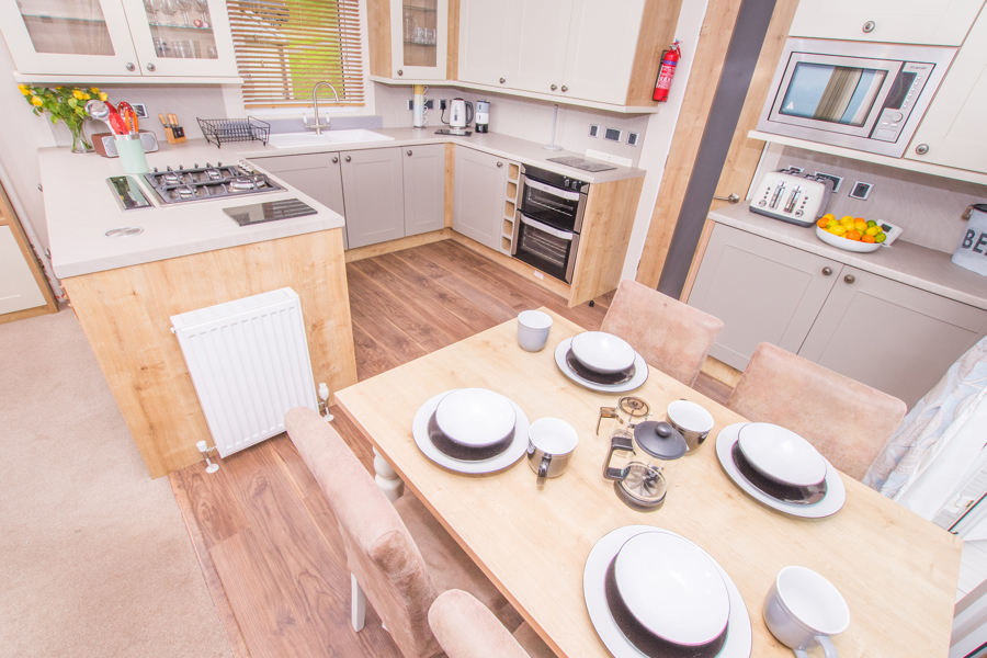 KITCHEN & DINING AREA: CP41 has been fitted with a modern kitchen that includes wine rack, extra storage and additional counter space. Integrated cooker with separate oven & grill, five ring gas hob, soft close cupboard doors, integrated fridge freezer, microwave, dishwasher & washing machine. adjoining dining area.