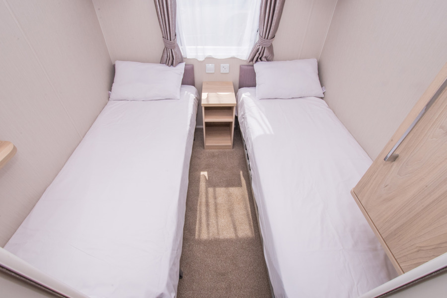 BEDROOMS: Three well designed bedrooms, one good size master bedroom with vanity area, fitted wardrobes and en-suite shower room. Two twin rooms with small wardrobes and over bed cabinets. The twin beds can be pushed together to form additional doubles If required. W15 can sleep 8 guests when using the sofa bed in the lounge.