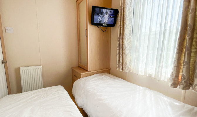 BEDROOMS: This accommodation has three bedrooms, one luxury double fitted with wardrobe and dressing table, LCD TV (not currently shown) and Free view. The main room also benefits from a double shower, toilet and wash basin en-suite. Two good size twin rooms both benefit from wardrobes and wall mounted flat screen TV’s. Maximum 6 Guests, including infants.