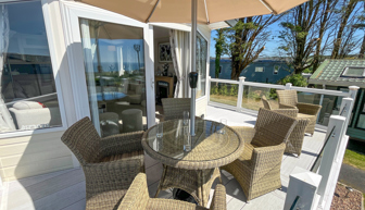 VERANDA: Front facing gated veranda with patio furniture supplied.