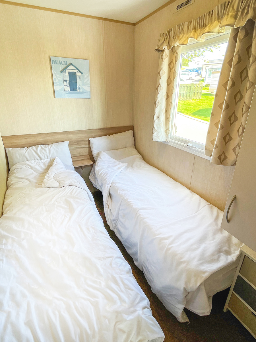 BEDROOMS: This holiday home has three bedrooms, one double with fitted wardrobe and two twin rooms with single beds and fitted small wardrobes. This unit can accommodate a maximum of 8 guests.