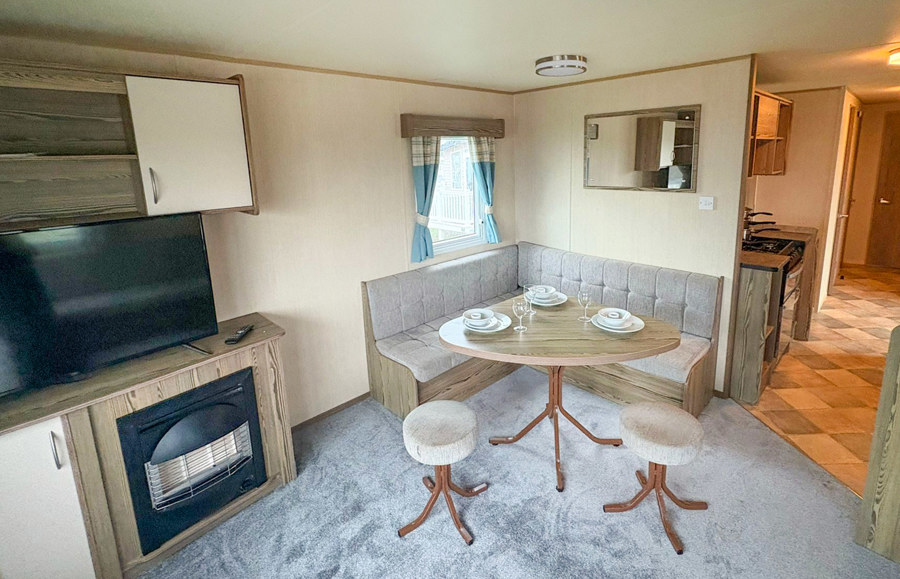 Key Features: Wi-Fi, dog friendly, fridge with icebox, open plan lounge, double glazing and hot air blow heaters, gas fire in lounge & 2 x toilets.