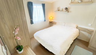 Key features: Double glazing, small side veranda, Wi-Fi-access, ample seating in the lounge, additional hot air heating in the bedrooms, electric fire in lounge, 2 toilets, undercounter fridge, room for a travel cot in the master bedroom and patio area.