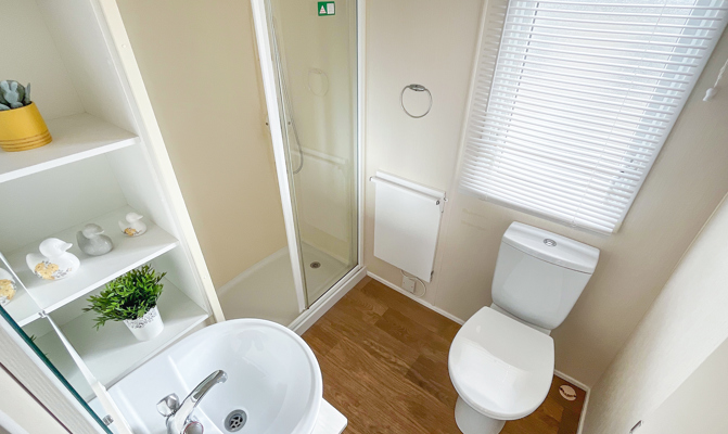 BATHROOM & TOILET: The family shower room has a shower cubicle, toilet, wash basin and heated towel rail. KP92 also benefits from an en-suite toilet and wash basin in the master bedroom.