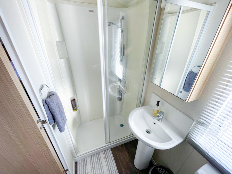 BATHROOM & TOILET: Fully fitted shower room fitted with full size shower with glass door, toilet, and wash basin. CW57 benefits from having 2 toilets.