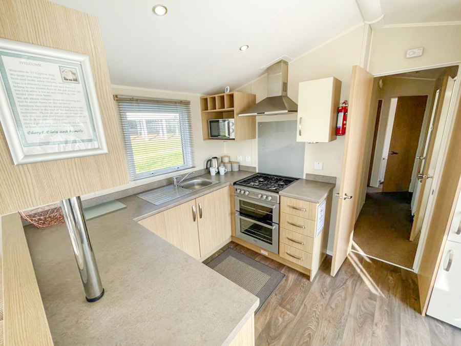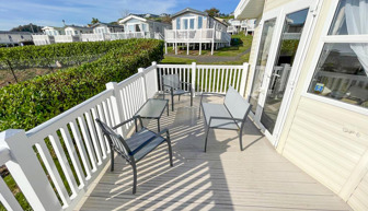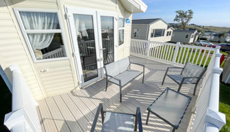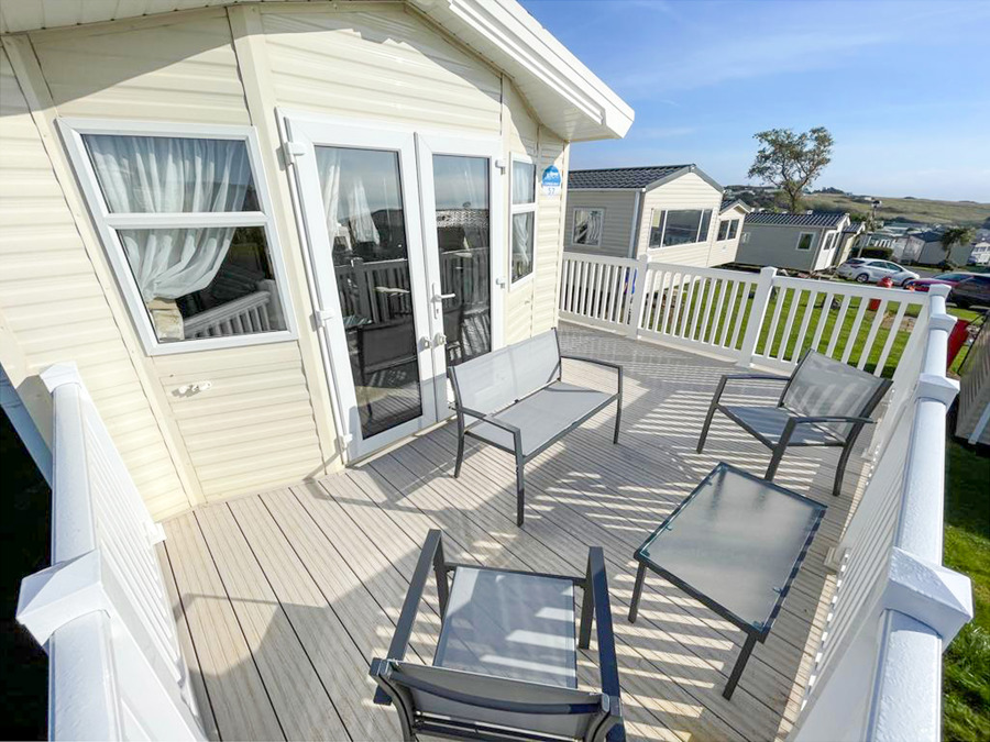 Key Features: Dog friendly, veranda, wi-fi access, double glazing, central heating, room for travel cot in master bedroom + en-suite, close to the beach, fridge freezer and parking.
