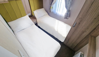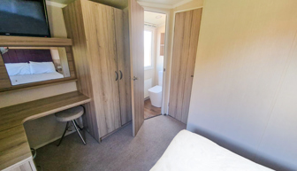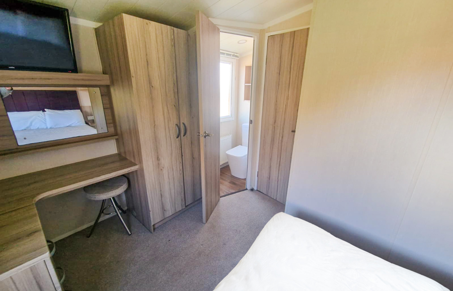 BEDROOMS: The master bedroom incorporates a double bed, fitted wardrobe, vanity area, room for a travel cot, wall mounted TV. The two twin rooms have small fitted wardrobes and over bed storage.