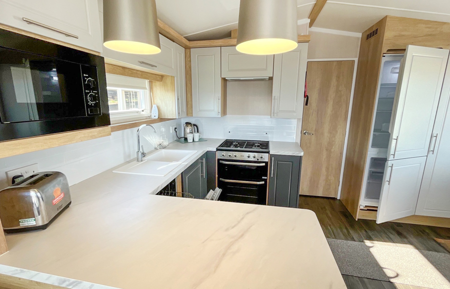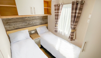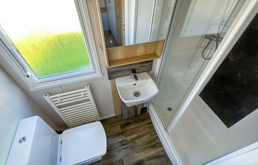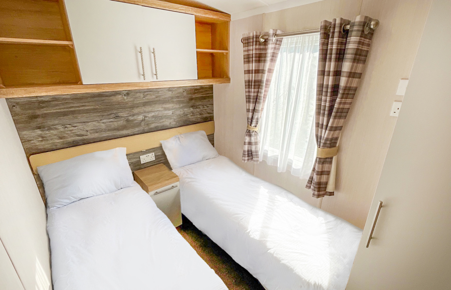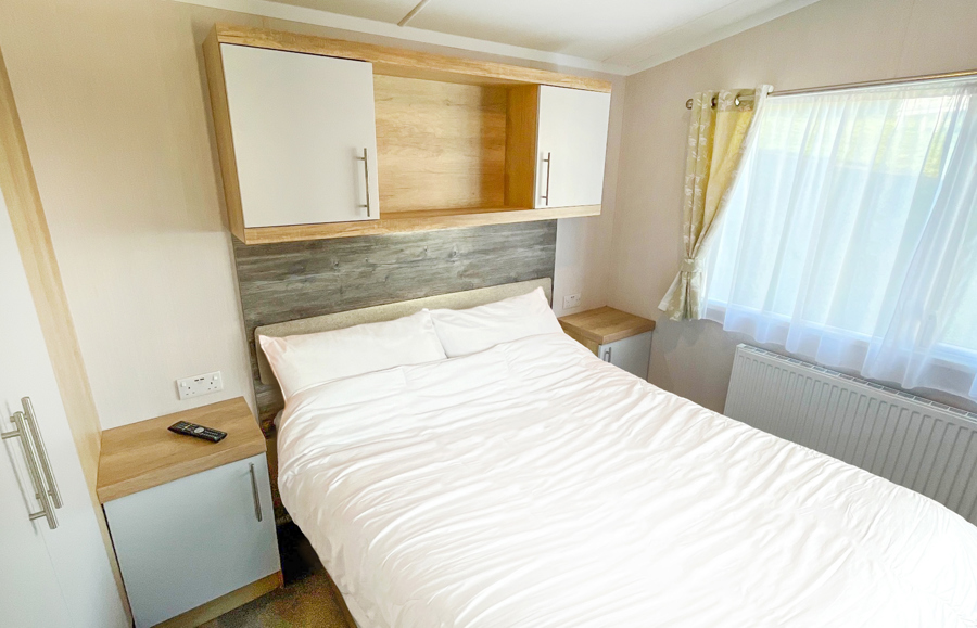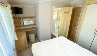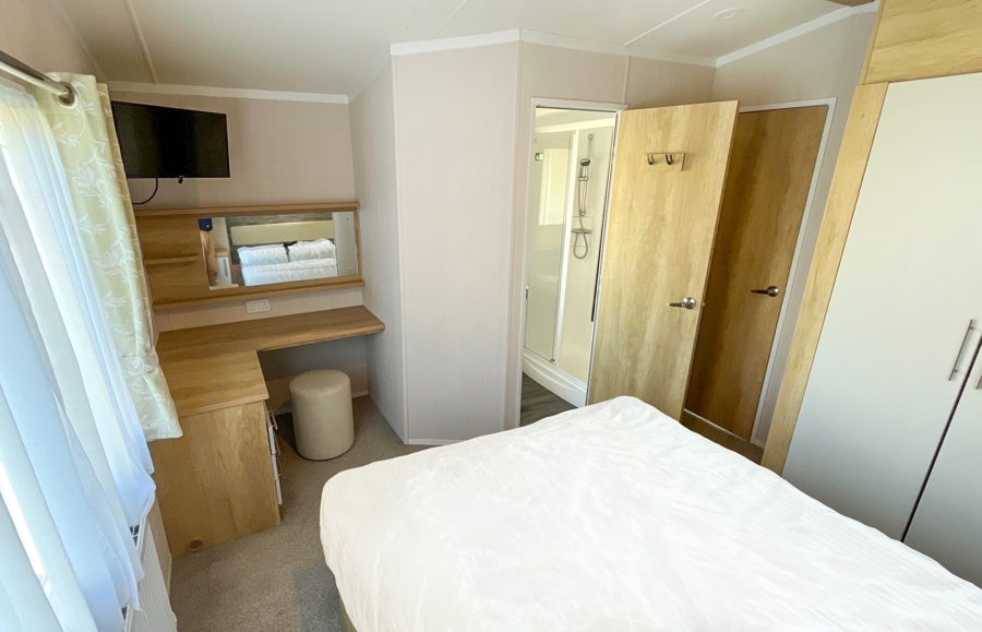 BEDROOMS: Spacious double, over bed storage, vanity area, USB sockets, fitted wardrobe, TV with Free-view and en-suite toilet with hand basin. A travel cot can be fitted but would restrict access to the en-suite.