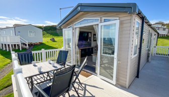 Key features: Lovely home with a front gated veranda and sea views, double glazing, central heating, fridge-freezer, dishwasher, two toilets, and a main bedroom with TV and space for a travel cot, sleeping up to 6 guests.