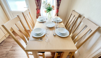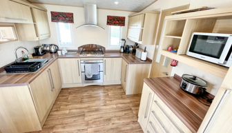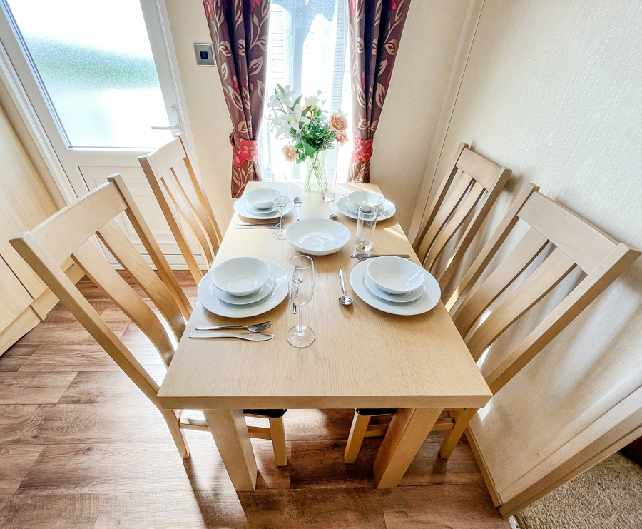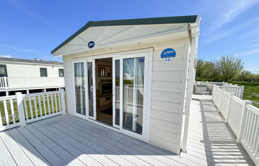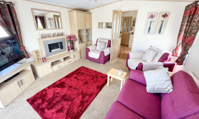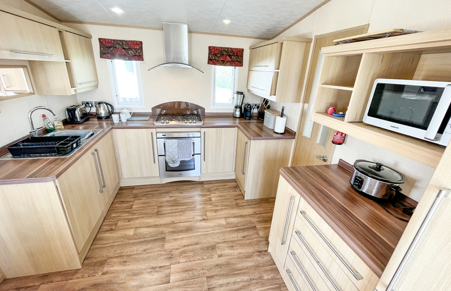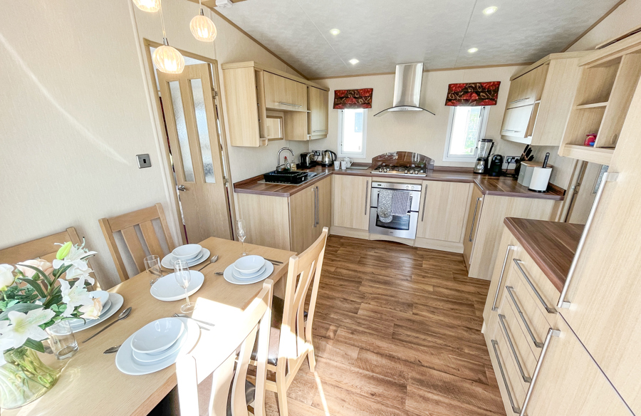 Key features: dog friendly, separate lounge with large Tv, French doors to front veranda, rear veranda with views, en-suite shower room, fridge freezer, washing machine, family shower room, parking and piped gas.