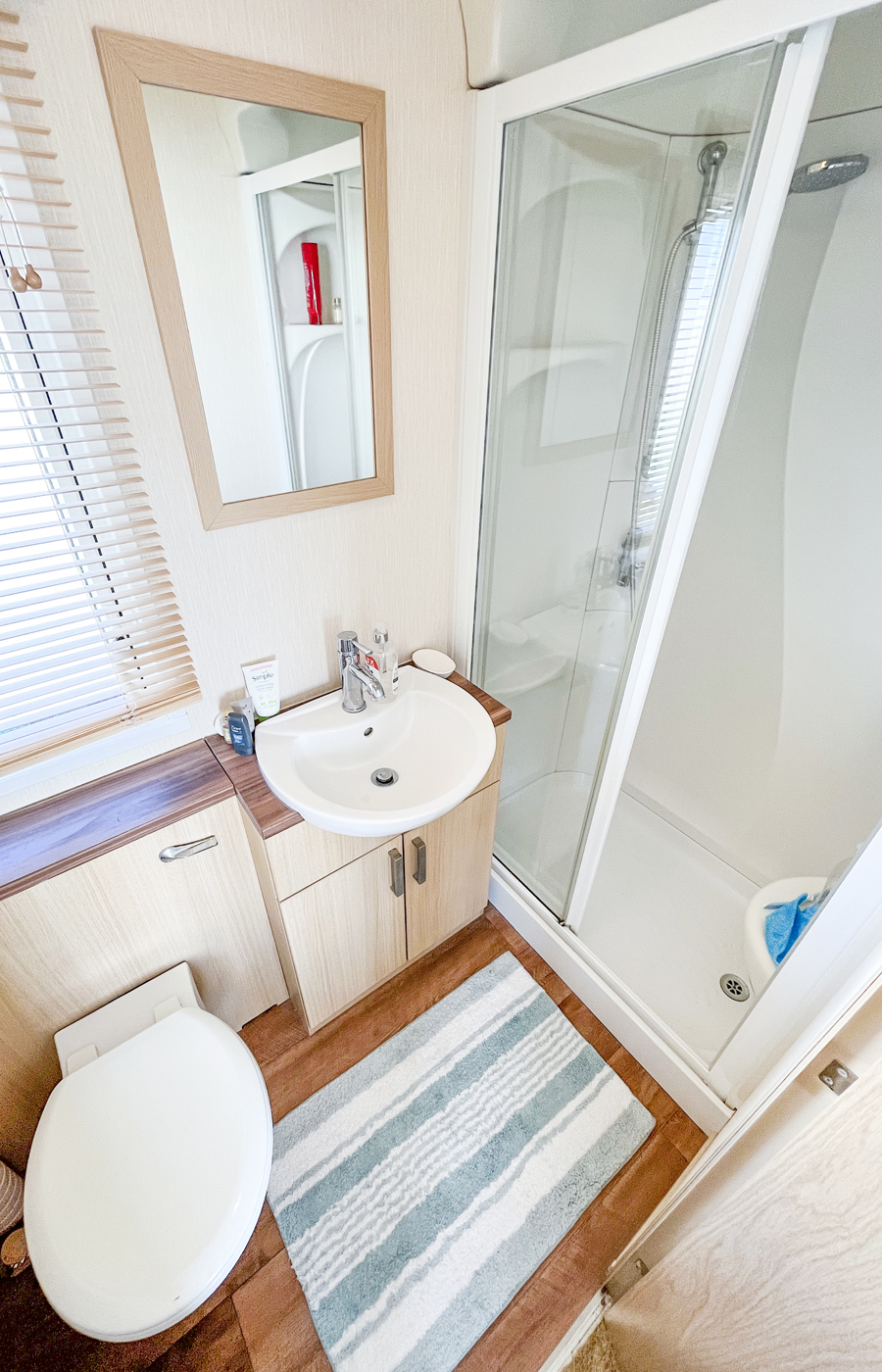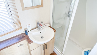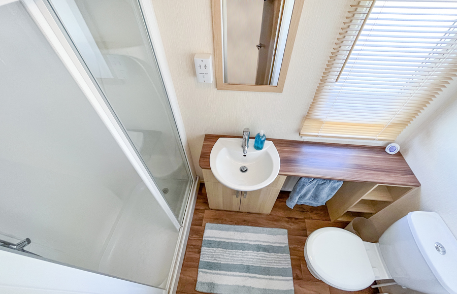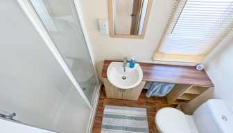 SHOWER ROOM: The family shower room comprises of a double shower unit, toilet and wash basin.