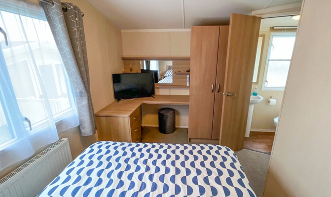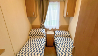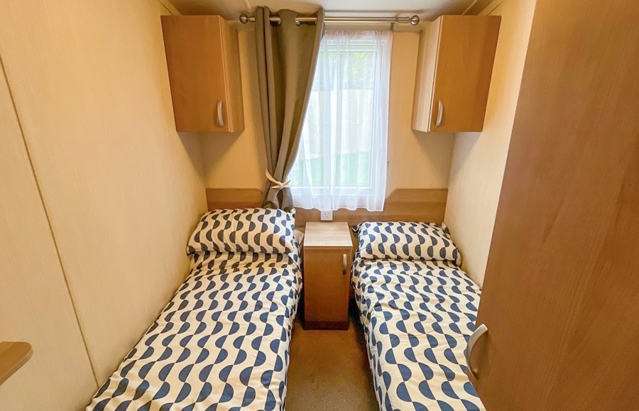 The first twin room includes1 double bed, small fitted wardrobe and overbed storage. The 2nd twin room includes 2 single beds, 2 overbed cabinets and small wardrobe. Quilts and pillows are supplied, linen can be supplied for short breaks at an additional cost. Maximum 6 guests.