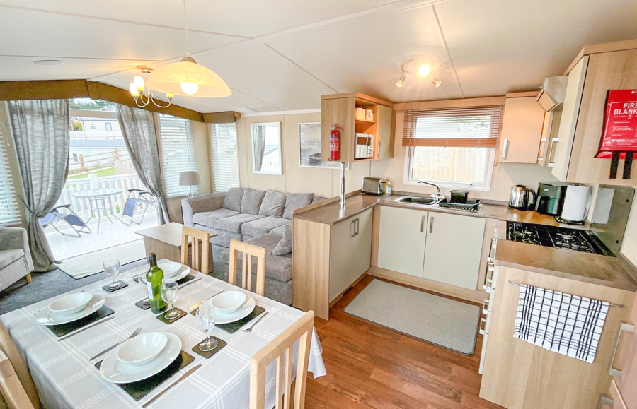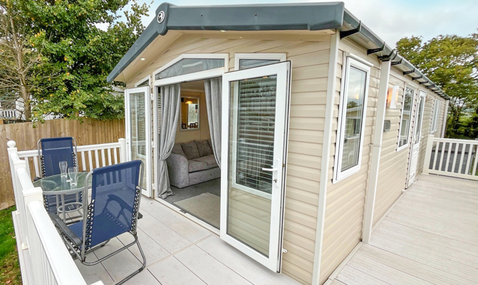 Key features: Veranda, French doors, Wi-Fi, double glazing, central heating, TV and en-suite toilet in master bedroom, 2 double beds, private driveway, full size integrated fridge freezer, maximum 6 guests.