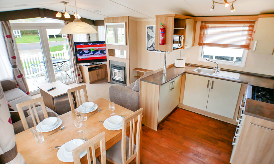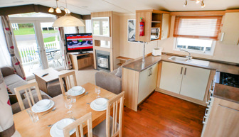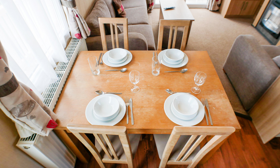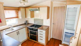 KITCHEN & DINING AREA: HV21 has a fully fitted kitchen with full size fridge freezer, cooker, and microwave. The dining area comes complete with free standing dining table & chairs.