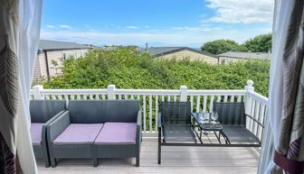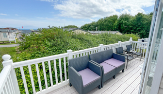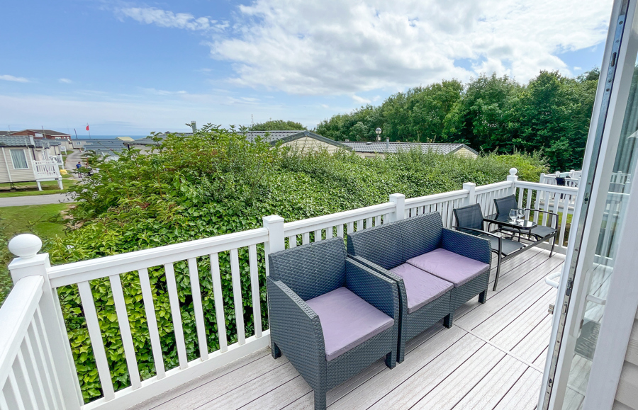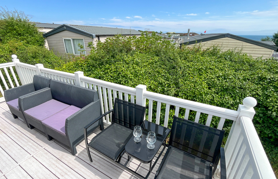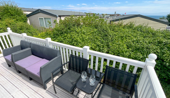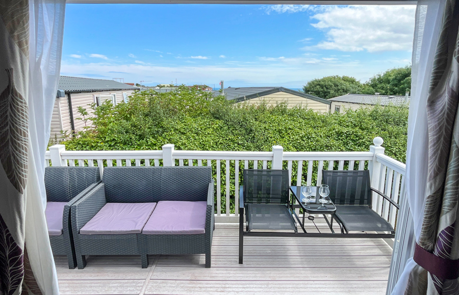 VERANDA: Front and side decking. Patio furniture is supplied.