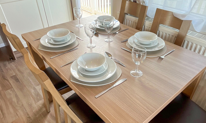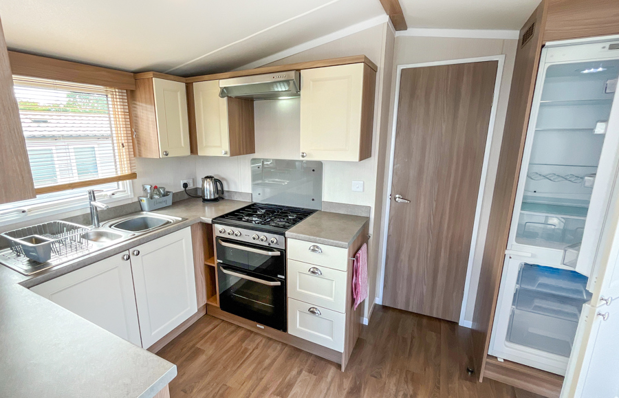 KITCHEN & DINING AREA: The kitchen is fully equipped which includes full size cooker, integrated fridge freezer and microwave. The dining area consists of fixed seating, as well as additional seating.