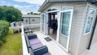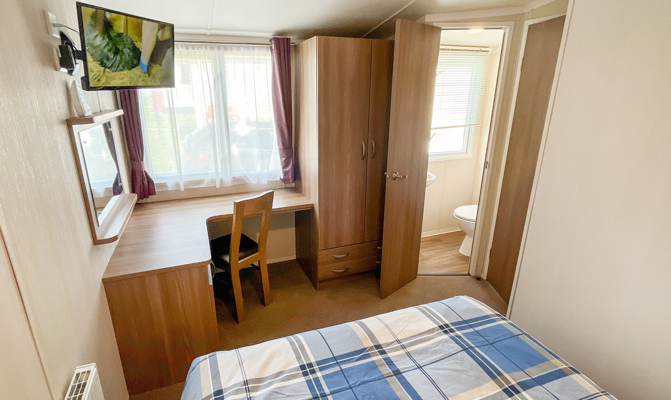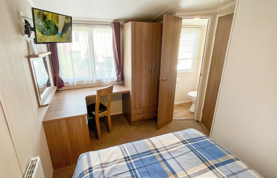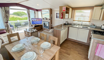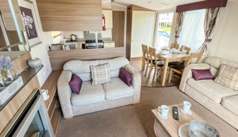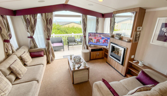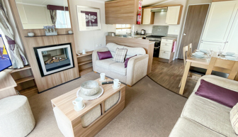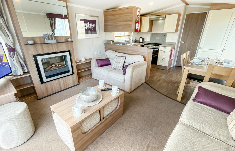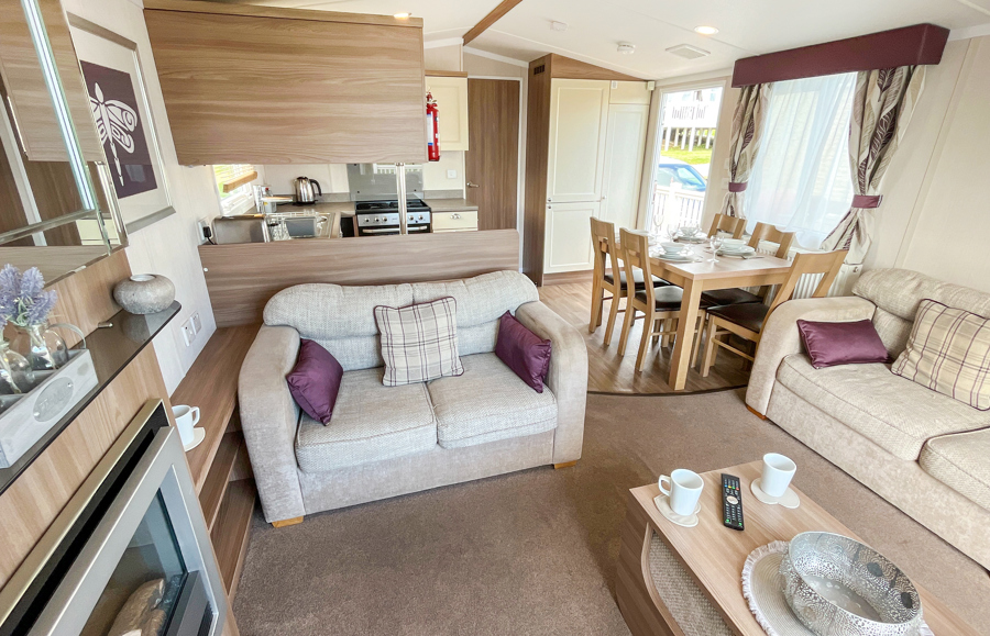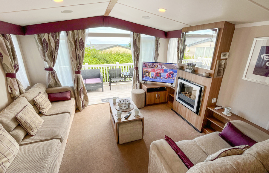 LOUNGE: Open plan design, seating to cater for all the family, built in cabinets with flat screen TV and electric fire. The lounge includes an occasional pull-out bed. JC236 can cater for a maximum of 8 guests.