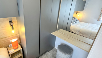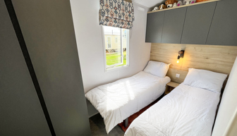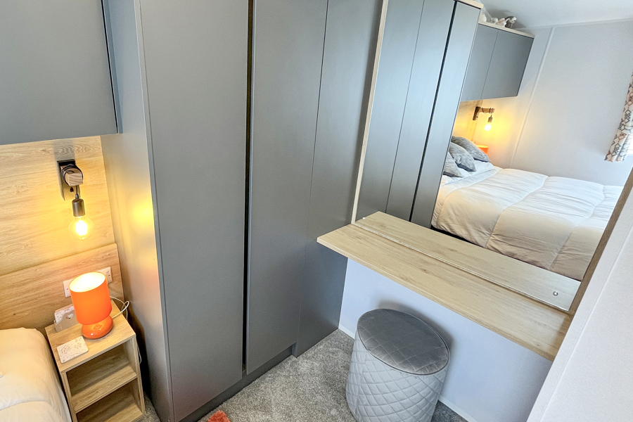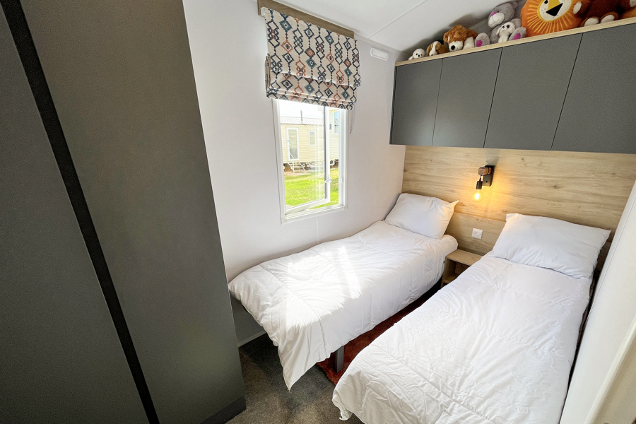 The twin room have fitted small wardrobe with radiator and the beds can be pushed together to form an addition double. As mentioned before there is an occasional pull out bed fitted in the lounge.