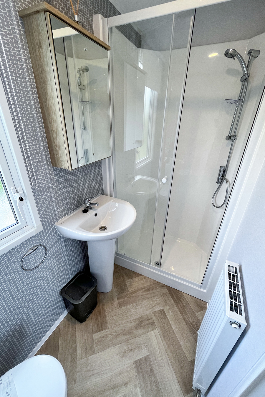 BATHROOM & TOILET: The shower room has a single shower cubicle, toilet, wash basin and radiator. This unit has 2 toilets.