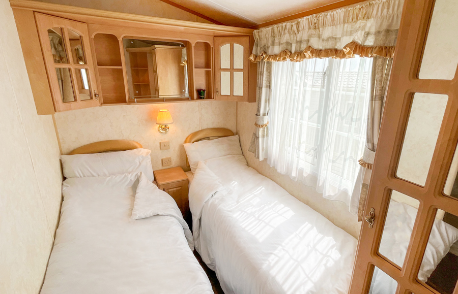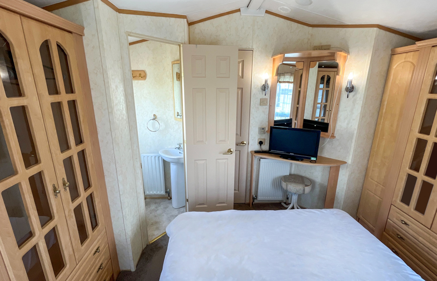 BEDROOMS: CD9 has two bedrooms; one double, with a king-size bed; with en-suite toilet, vanity area with stool and two fitted wardrobes. The twin room with fitted two single beds, single wardrobe and radiator. The lounge has an occasional pull out bed for those extra guests. CD9 can accommodate a maximum of 6 guests.