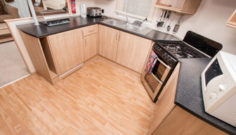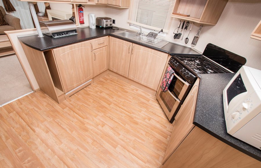 KITCHEN & DINING AREA: KP99 has been fitted with an modern kitchen which includes full size fridge and freezer, cooker, microwave. The dining area benefits from a full length window and comes complete with free standing dining table and chairs.