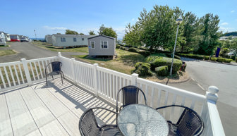 Key features: driveway, gated veranda with park and partial sea views, two toilets, double glazing, central heating, modern kitchen with fridge freezer, room for travel cot in master bedroom, easy reach to main amenities