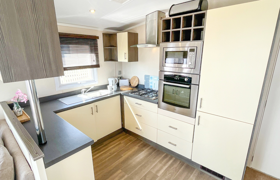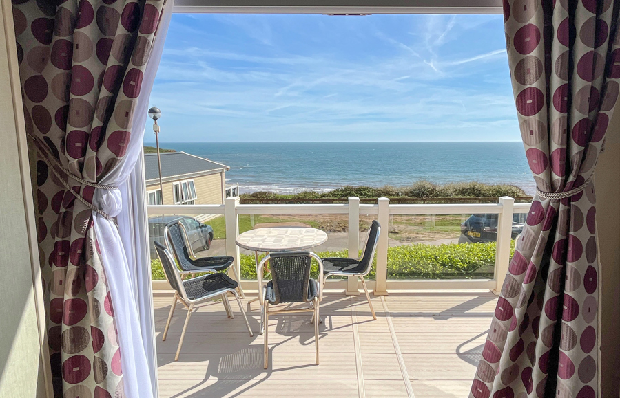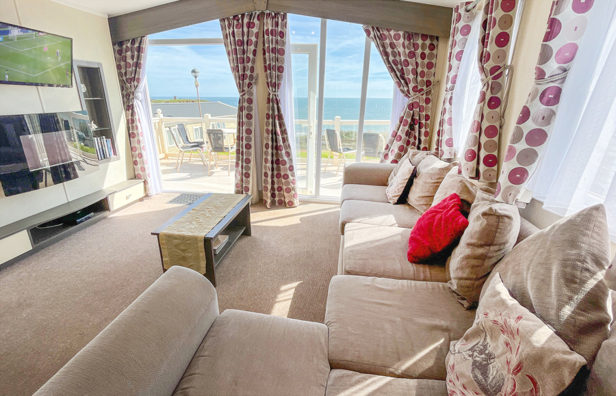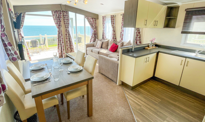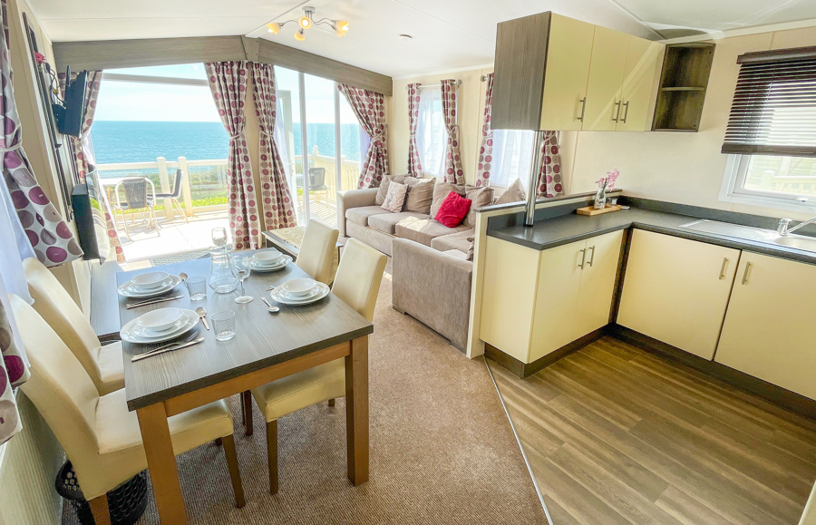 Key features: Dog friendly, French doors leading to large veranda with stunning sea views, washing machine, fridge freezer, en-suite wc, ramp access, central heating, double glazed, modern kitchen & lounge.
