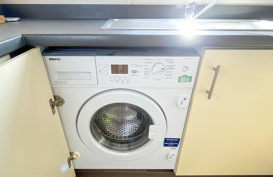KITCHEN & DINING AREA: Well-appointed kitchen with appliances inc full size integrated fridge and freezer, washing machine, microwave, 4 ring hob with electric ignition, pop-up multi power supply, cooker and extractor fan. The dining area is spacious and benefits from a comfortable free standing table and chairs.
