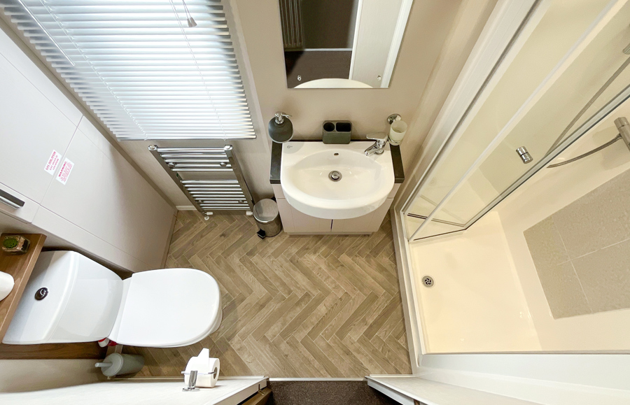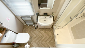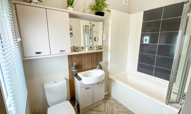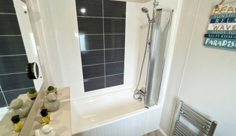 BATHROOM: A family bathroom with full size bath, over head shower, toilet and wash basin. The master bedroom also includes an en-suite shower, toilet and wash basin.
