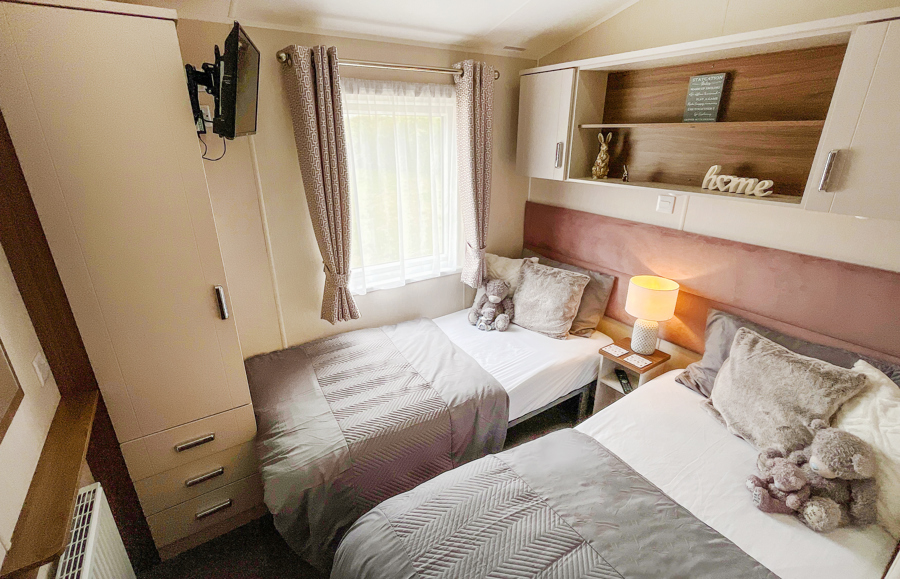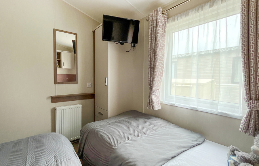 BEDROOMS: This accommodation has two bedrooms. The Master bedroom has a double bed, walk in wardrobe, vanity area with a mirror, The Master en-suite has a toilet, shower and wash basin. The Twin bedroom has 2 single beds, a fitted wardrobe, wall mounted TV and radiator.