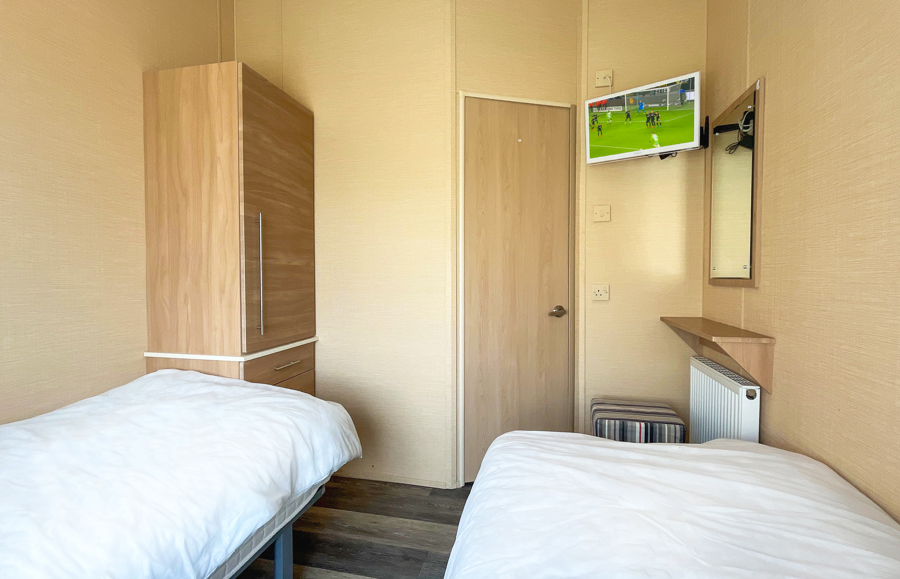 BEDROOMS: Bedroom one has a king sized divan bed, spacious walk in dressing room and storage, 32” LCD TV with freeview, full en-suite bathroom complete with shower, toilet and wash basin. Bedroom two benefits from twin divan beds, that can be pushed together to form a double, TV with freeview, and large fitted wardrobe. Bedroom three also benefits from twin divan beds, that can be pushed together to form a double , two large fitted wardrobes and TV with freeview.