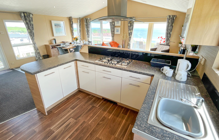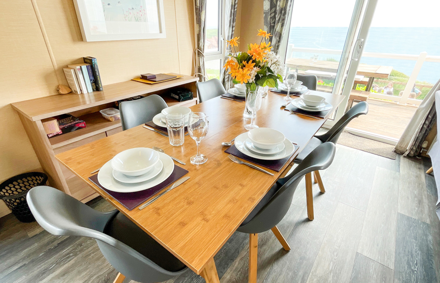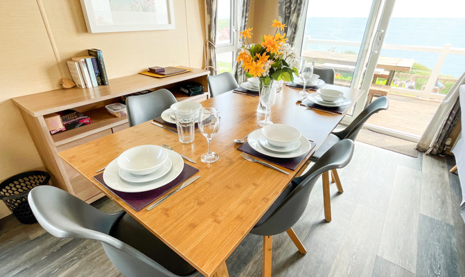 LOUNGE: From the lounge you have access to the large veranda through the French doors. The lounge is spacious with and equipped with 42” LCD wall mounted TV with Freeview. The sofa has an occasional pull out bed to cater for extra guests allowing a maximum number of 8 guests.