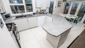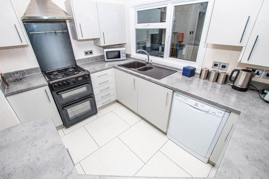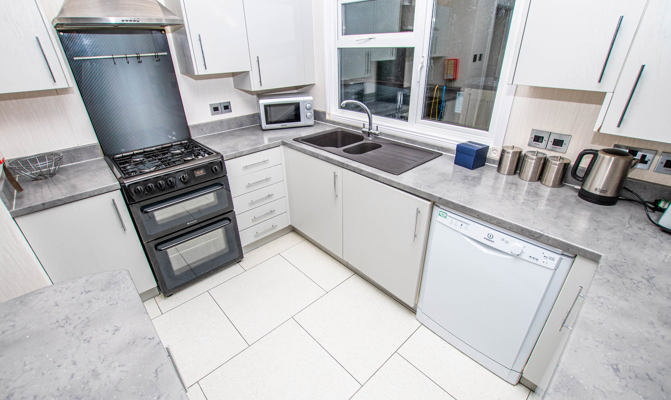 KITCHEN & DINING AREA: Equipped with necessary standard utensils, microwave, oven and grill; full size fridge and freezer, dishwasher and a washing machine. The dining area includes free standing table and 4 chairs.