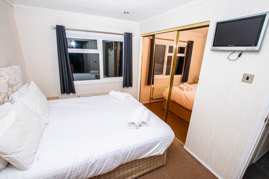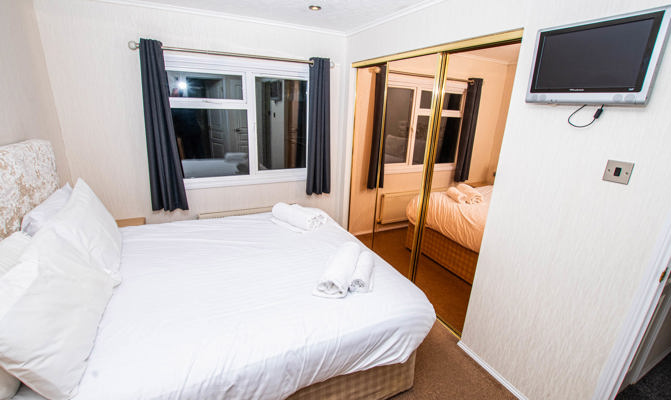 BEDROOMS: 2 bedrooms: Master bedroom with double bed, vanity area, built in mirrored wardrobes, wall mounted TV, and room for a travel cot. TV. The Master room also benefits from an en-suite shower, wash basin and toilet.