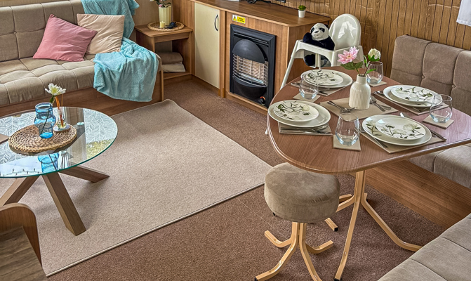 Key features: Wi-Fi access, dog friendly, piped gas, single glazed, central heating, gas fire in lounge, 2x toilets, undercounter fridge with freezer box, Maximum 8 guests.