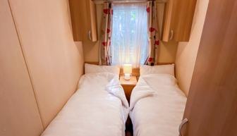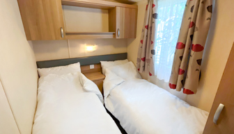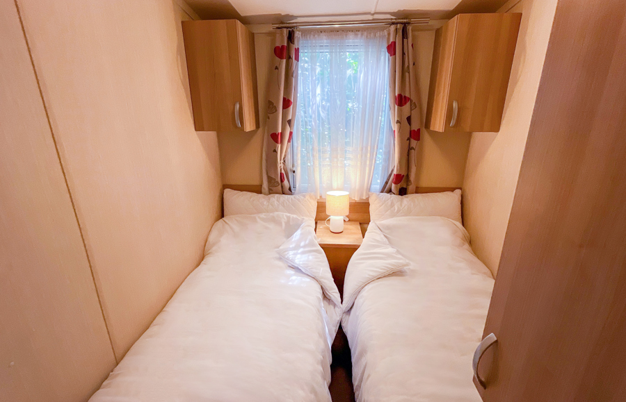 Two twin rooms with 2 single beds and single fitted wardrobes.